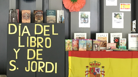 A 23 de abril celebra-se o dia mundial do livro, instituído pela UNESCO (desde 1995), procurando despertar a importância do livro e o prazer da leitura. O grupo de Espanhol, em parceria com a biblioteca, preparou uma exposição, misturando livros de autores hispânicos com o aroma das rosas, para que os alunos tivessem a oportunidade de contactar com as tradições perpetuadas nas comunidades autónomas de Aragão, Catalunha e das Ilhas Baleares.