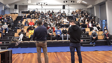 A palestra teve lugar no ginásio da escola onde estiveram presentes cerca de 200 alunos e vários professores.