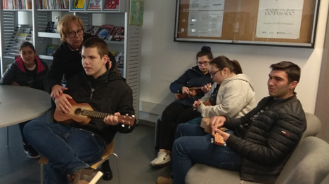 Para terminar, o Grupo Dona Ukuleles fez ainda uma apresentação na Biblioteca da escola para alunos, professores e funcionários.