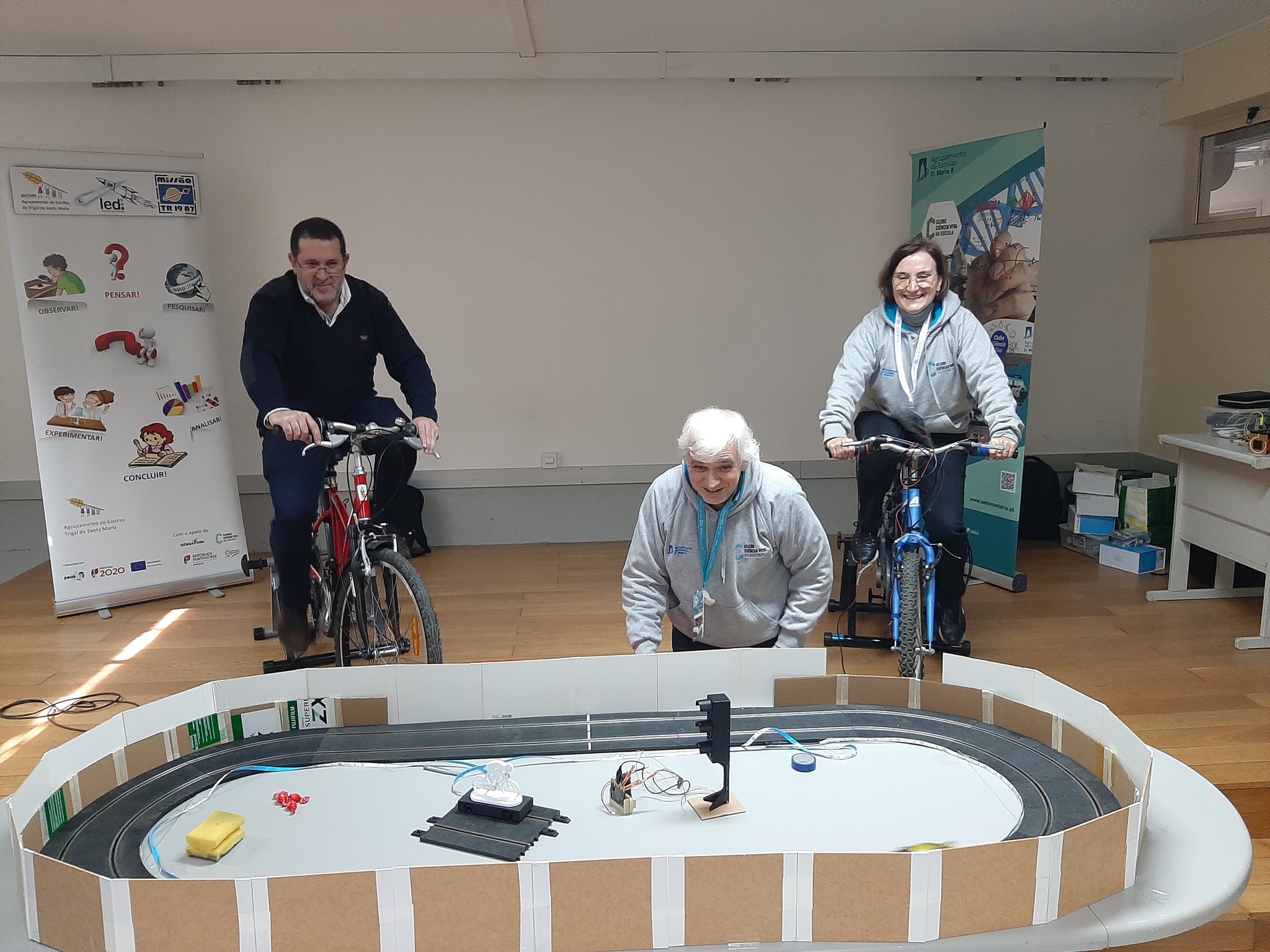 Em articulação com o AE de Trigal de Santa Maria, a nossa escola apresentou a aplicação do kit desenvolvido pelos nossos alunos, E-SUBIKE, bem como os carrinhos da pista de SLOT Car, movidos pela energia gerada pelas bicicletas.