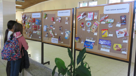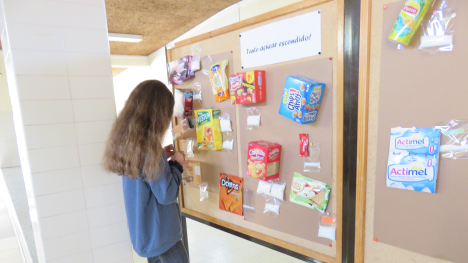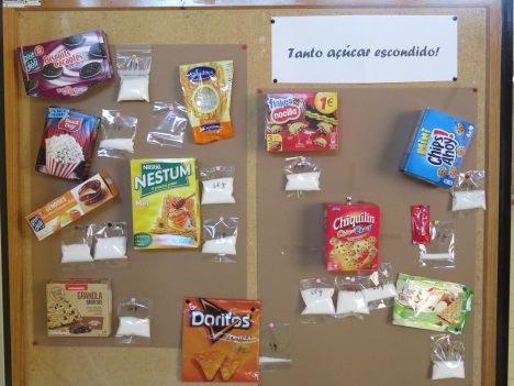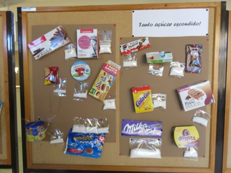 Numa análise comparativa muito sugestiva, foi visualizado em pequenas saquetas o teor de açúcar presente em alimentos tão do agrado dos alunos, procurando-se assim alertar a comunidade para a facilidade com que rapidamente se atinge e ultrapassa a dose diária de referência relativa aos açúcares, e consciencializar para a importância de manter uma dieta saudável.