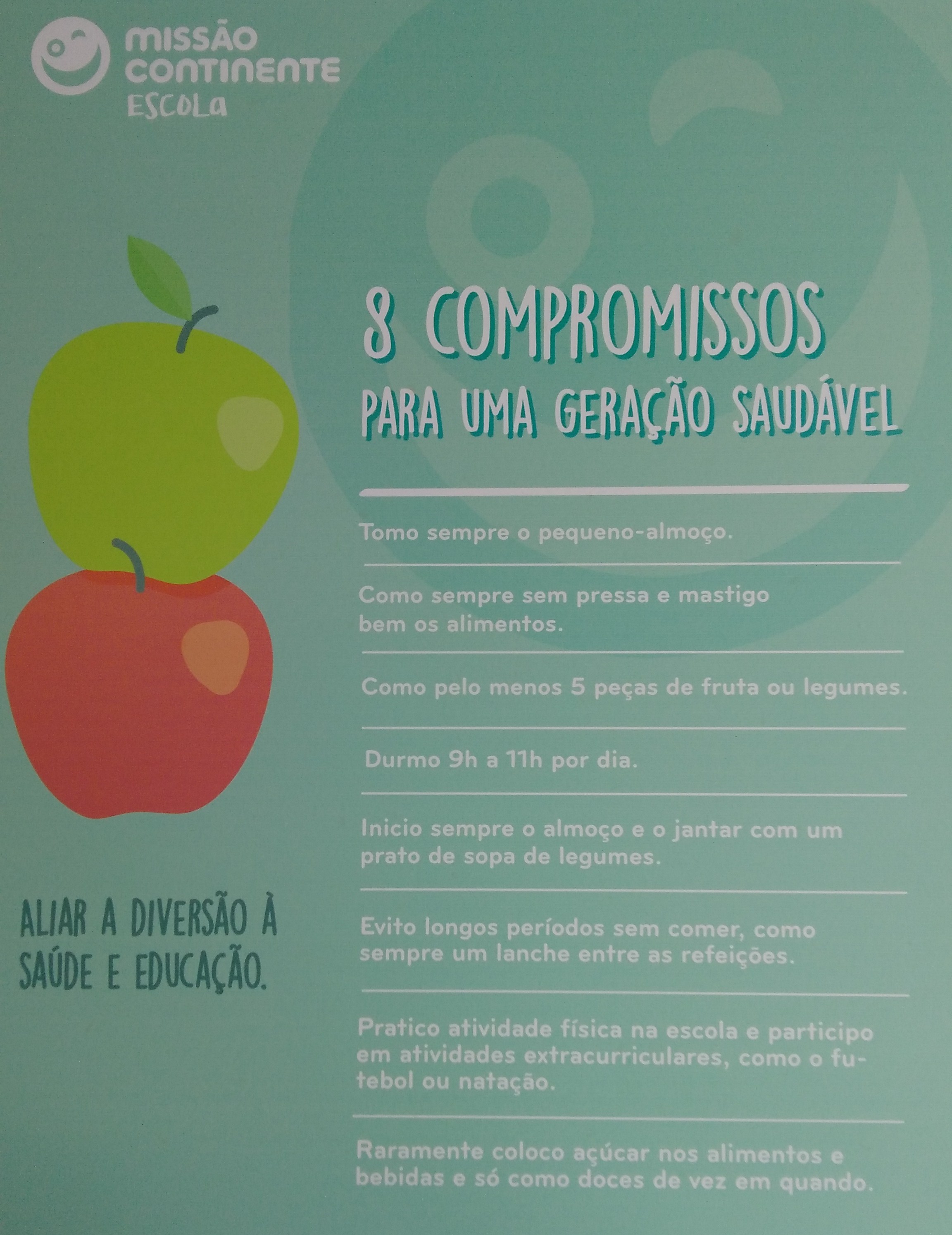 Foi ainda distribuído um Kit Escola Missão Continente a cada aluno e professor, que inclui: um saco de pano, uma t-shirt, um lápis com sementes para plantar, um vaso, uma sebenta e um poster sobre os 8 compromissos para um estilo de vida saudável.
